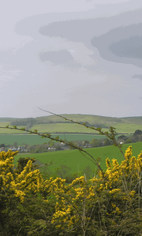 This gate opens onto farmland and scrub stretching just half a mile from the Jurassic coast, up and over the Dorset ridgeway.