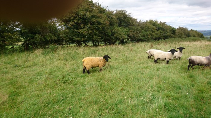 It looks like a cold winter’s day with frost glistening across the fields, doesn’t it? In fact, it was muggy and warm and what looks like frost is actually reflections from a heavy dew lying on spider webs at the head of every dead thistle and nettle. Look closely and you can see there are spider webs all over the grass as well. That’s all across this 15 acre field – and the next one and the one to the west, the east, north and south. If I turn around I can see right across the Dorset plain up towards Yeovil and there are spider webs covering every square inch of every field and every hedgerow.