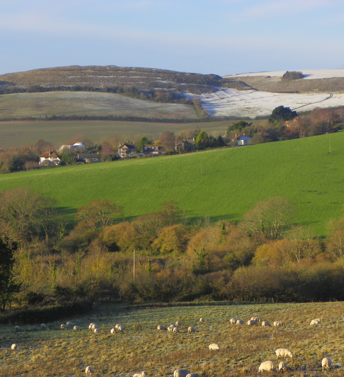 This gate opens onto farmland and scrub stretching just half a mile from the Jurassic coast, up and over the Dorset ridgeway.