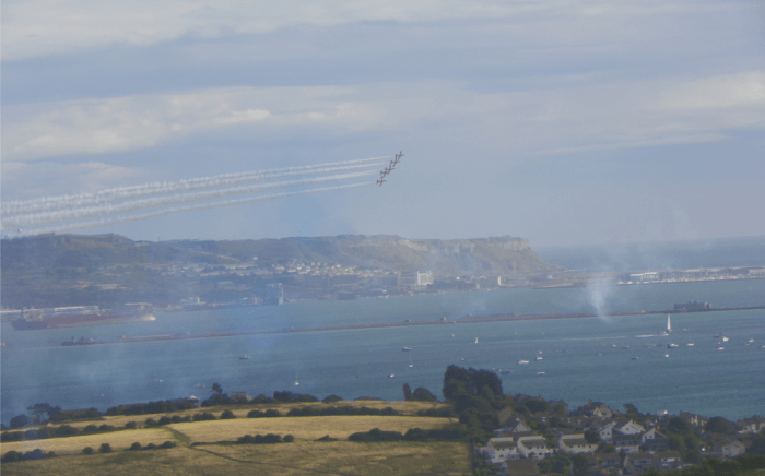 At five o’clock yesterday evening I stood on top of White Horse hill and watched the Red Arrows perform for Weymouth carnival.