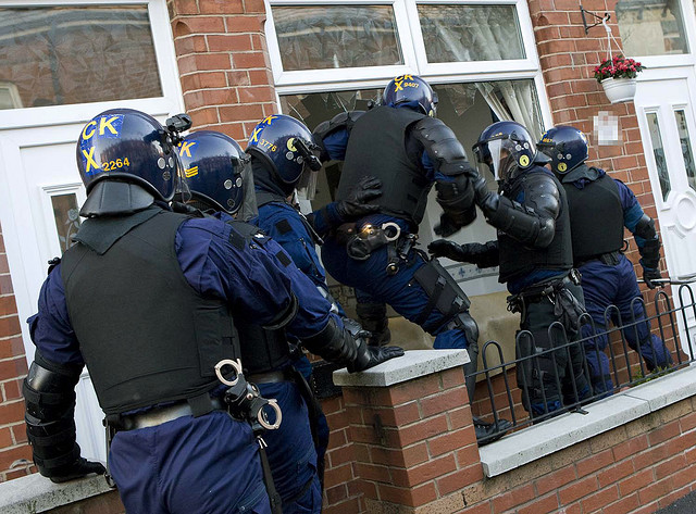 I remember last year I heard the story of a police officer involved in a raid who had both arms nearly severed by falling glass. What ludicrous system is it that puts citizen against citizen like this, and endangers life on all sides?