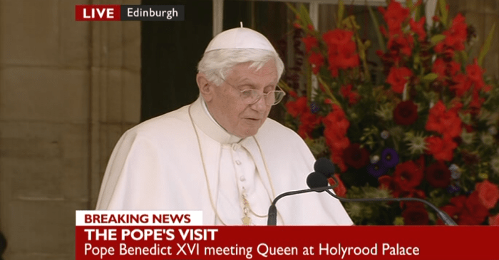 Yet we entertain, revere and pander to Pope Benedict, this embodiment of the greatest source of evil for 2000 years filled with agony, suffering and death! Our leaders fawn over him as if there is some significance other than his depths of wickedness.