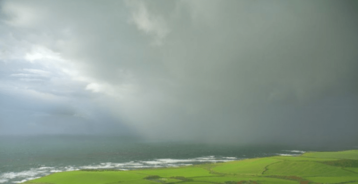 You’ve never been really wet until you’ve been Extreme Dog Walking. When the rain has been blown past horizontal, round to vertical but going upwards, then you begin to get a flavour of this exciting and challenging sport. When you have to walk with your face turned away from the stinging shotgun pellets that are rain drops while the dogs whimper and scuttle about your feet, only then will you begin to understand the determination, courage and true grit necessary to survive and succeed in this competition to end all competitions. Far below the sea can just be seen as a seething mass of whitewater. As the squalls come in the whole environment darkens and the gale force winds thrash and tangle at hat and clothing. Even with the air temperature at 17 C, the rain makes your hands freeze and your face smart. All you can do is call the dogs on, put your head down, gird your loins, steel your determination and go forth into the turbulence. There is no option to stop. It is as far to go on as it is to retreat. Forwards is the only option. Onwards to the end, to glory and glorious triumph!
