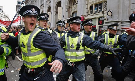 When it comes to the brutal assault by Sergeant Delroy Smellie on Nicola Fisher or the death of Ian Tomlinson, clearly caused by PC Simon Harwood, most of us would be prepared to accept the “bad apple” argument.   Yet somehow, in the Nicola Fisher case, District Judge Daphne Wickham was persuaded to refuse to hear Ms Fisher’s statement in court.  Somehow,  over a year and a half after Ian Tomlinson was killed, PC Harwood has still not been called to account for his actions and is still suspended on full pay.  Neither have his colleagues who blatantly lied and tried to cover up what had happened.  The truth is these men are not bad apples.  They are the deliberate product of the Met’s Territorial Support Group (TSG).  In hiding their identification and using brutal, disproportionate violence, they are entirely consistent with the culture and training that their senior officers have designed.