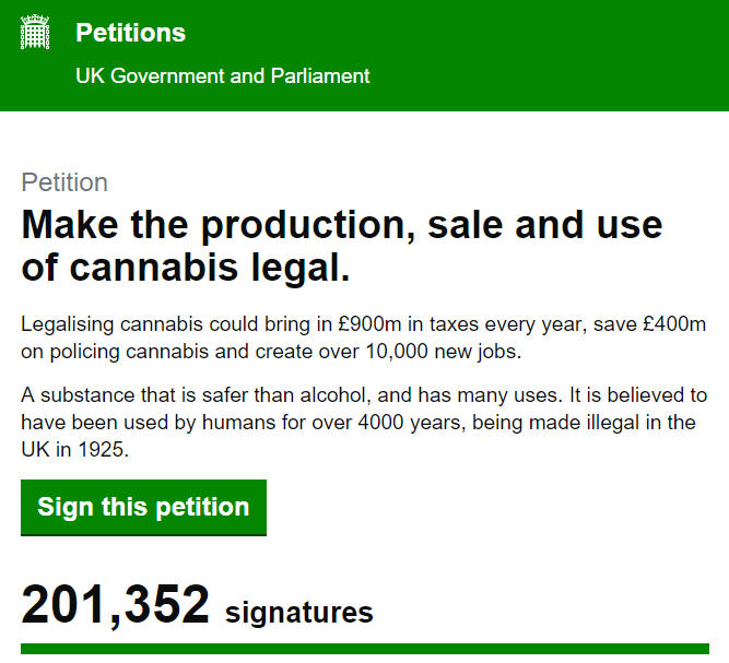 It’s a great achievement that together we have doubled the the number of signatures required for a debate on cannabis legalisation to be ‘considered’. But it’s not over yet.