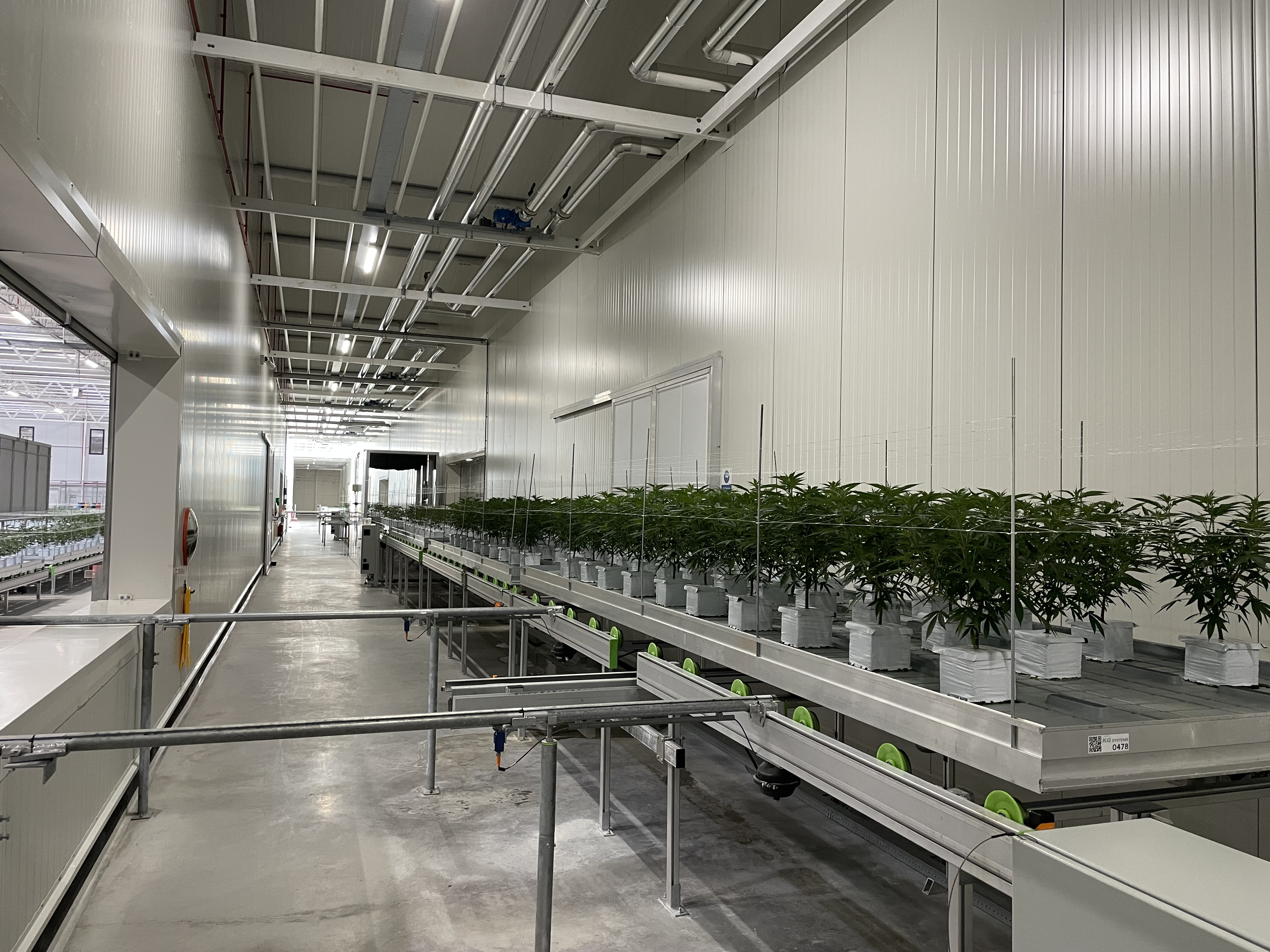 I am intimately acquainted with the demands of MHRA licensing, of GMP certification and a compliant pharmaceutical quality system, so I am not surprised by the cleanliness and precision of the grow rooms. They are another stage up from what I have seen in the USA. They are also much less crowded with far fewer plants and much more room around them. I was particularly impressed with the space given between branches hanging to dry. All this adds time and cost. There are no short cuts at all.