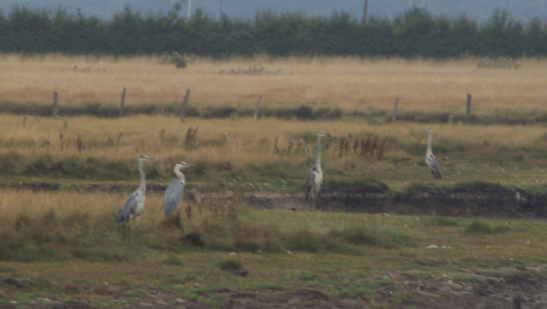 The birds took off and escaped me but as we reached the limit of that direction where a vicious barbed wire fence hinders any further progress, I saw them both on the side of the river bank. Then I saw double, for perhaps 60 or 70 yards in front of me were four herons casually watching the water and thinking about breakfast.