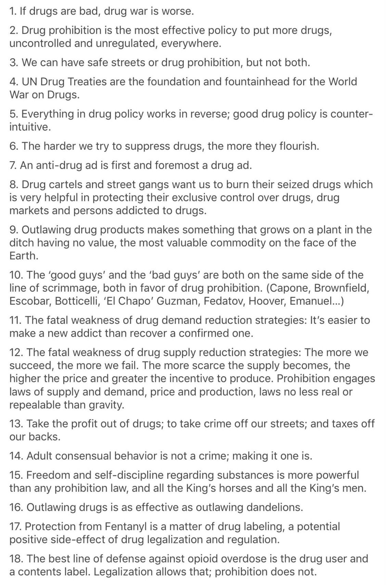 18 Truths on Drugs Policy